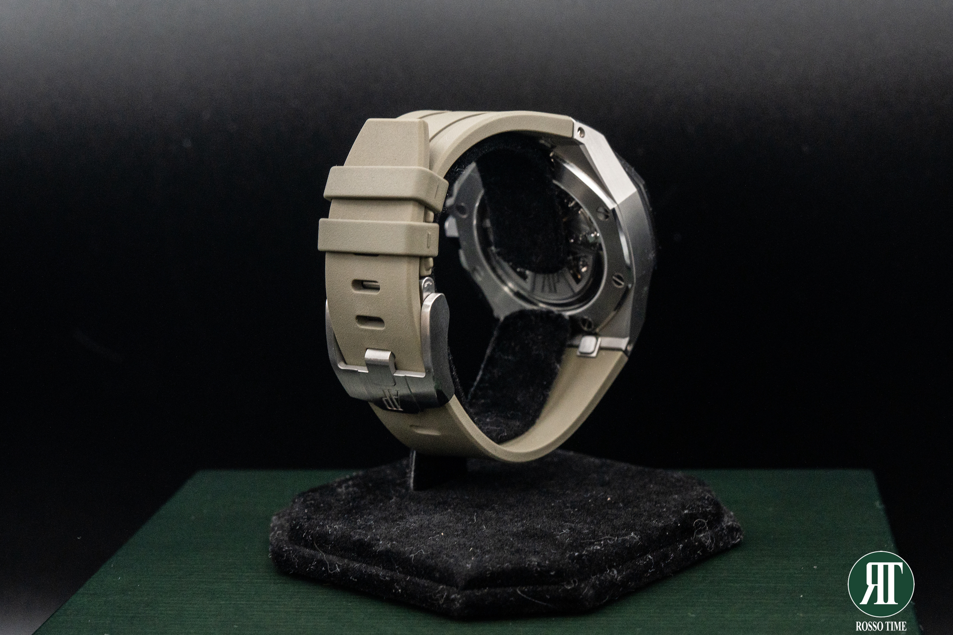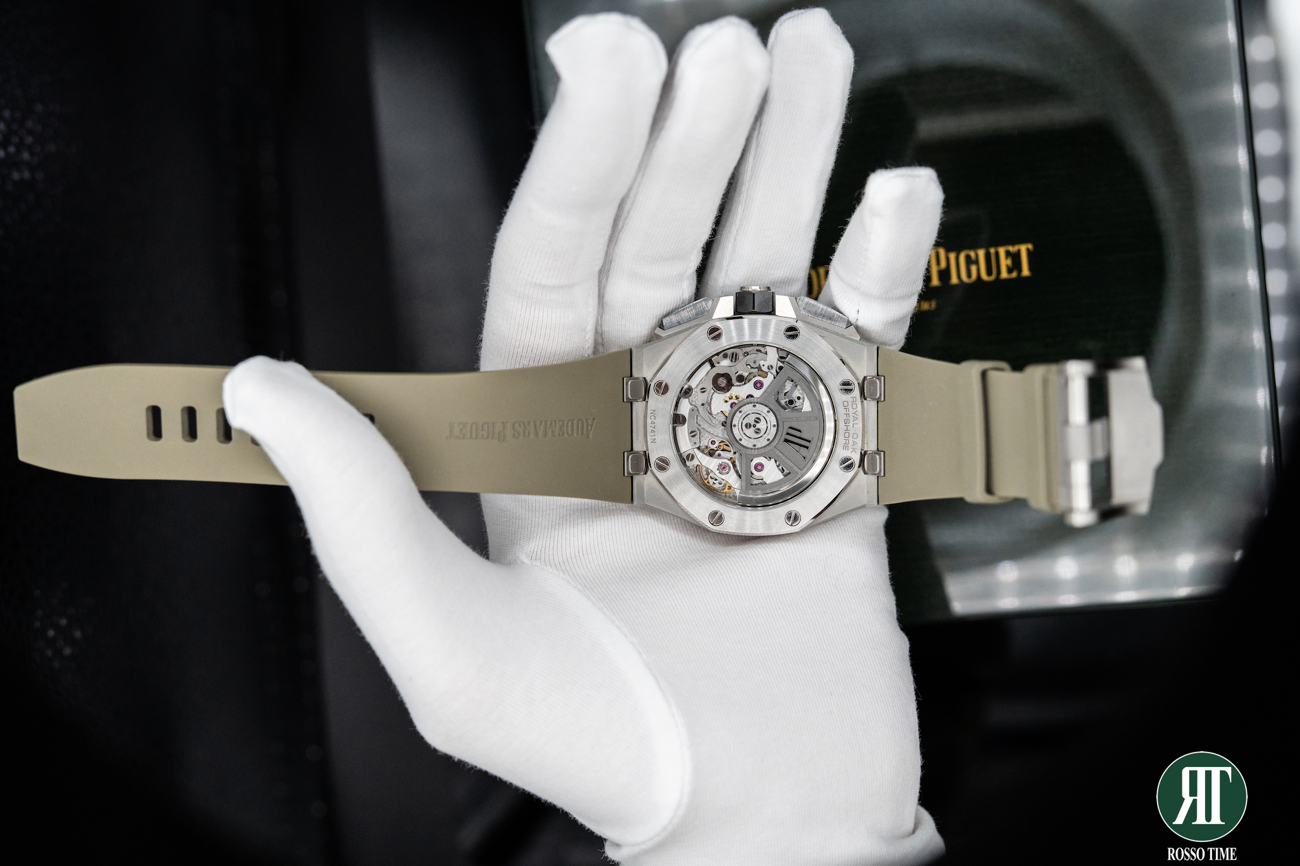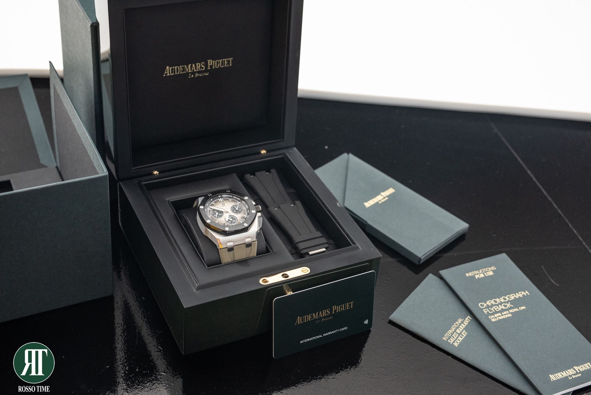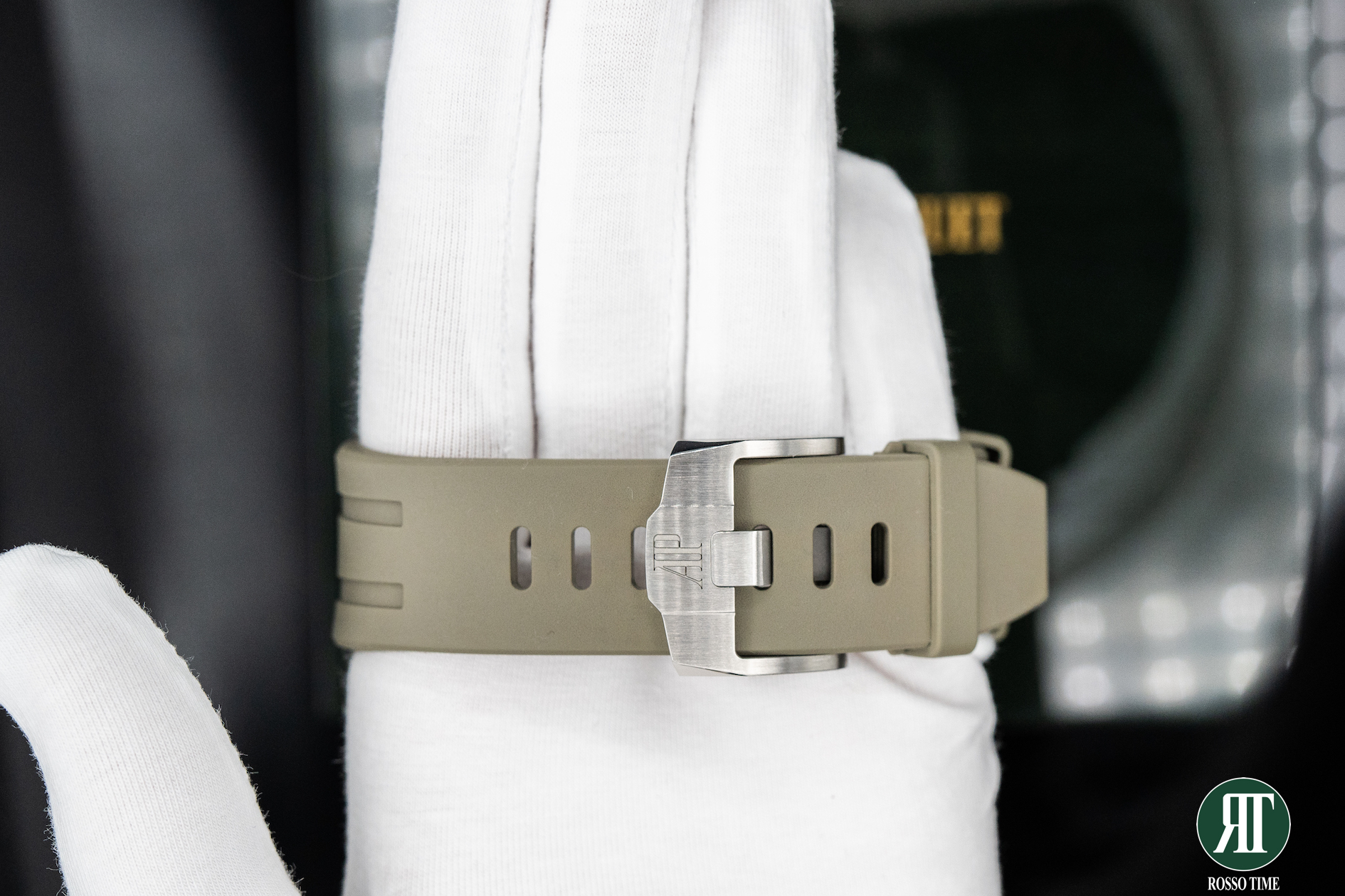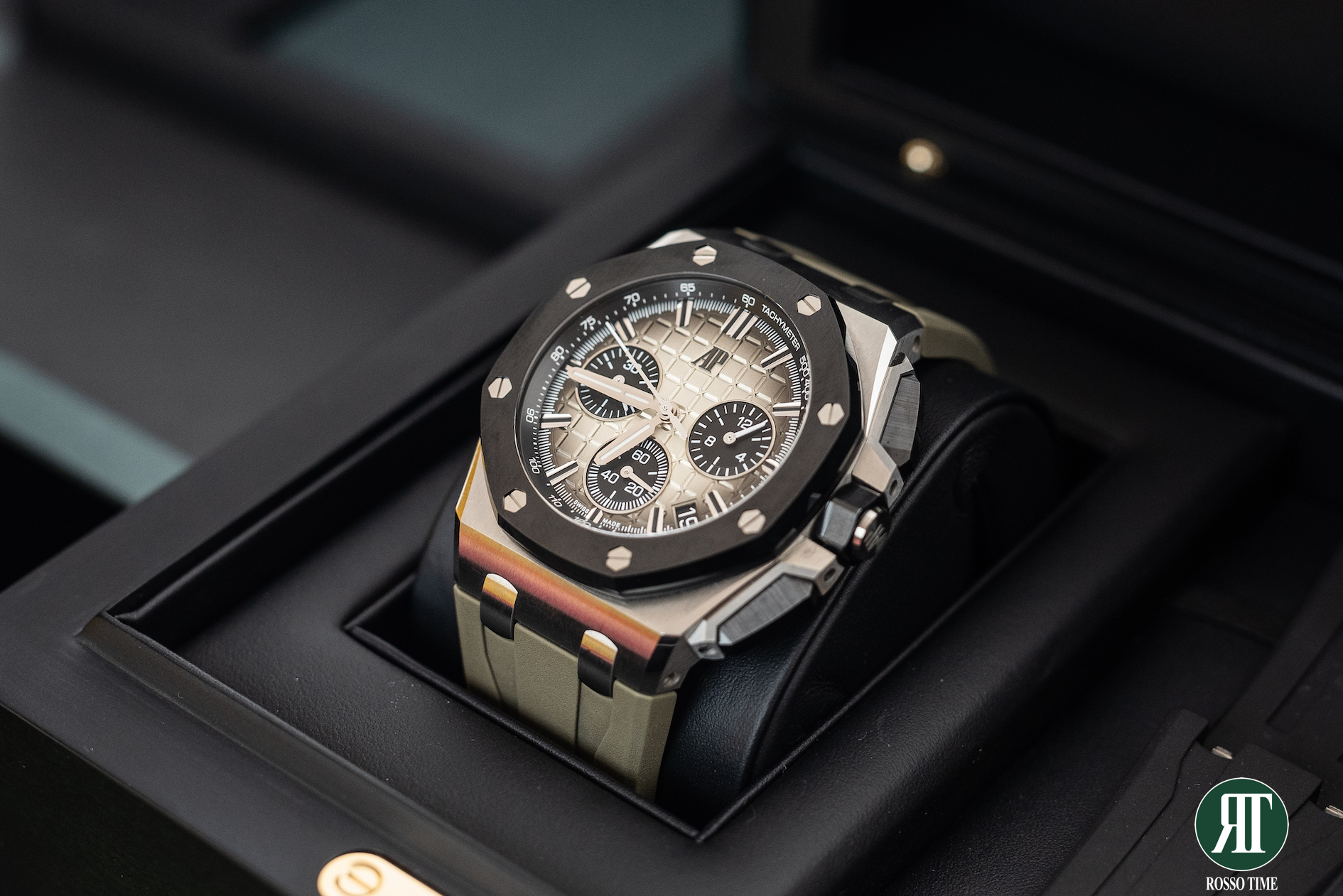 For sale this incredible Audemars Piguet Royal Oak Offshore watch, purchased in Genova in 2021. This Swiss made watch has an iconic design with an octagonal bezel and steel case. The brown embossed dial contains luminescent indexes and is protected by a sapphire crystal. The brand’s logo can be seen at the top. The strap is made of brown rubber and has a steel buckle clasp. The condition of the watch is impeccable, it has never been worn. It comes with its box and documents, and includes the brand’s official guarantee.
