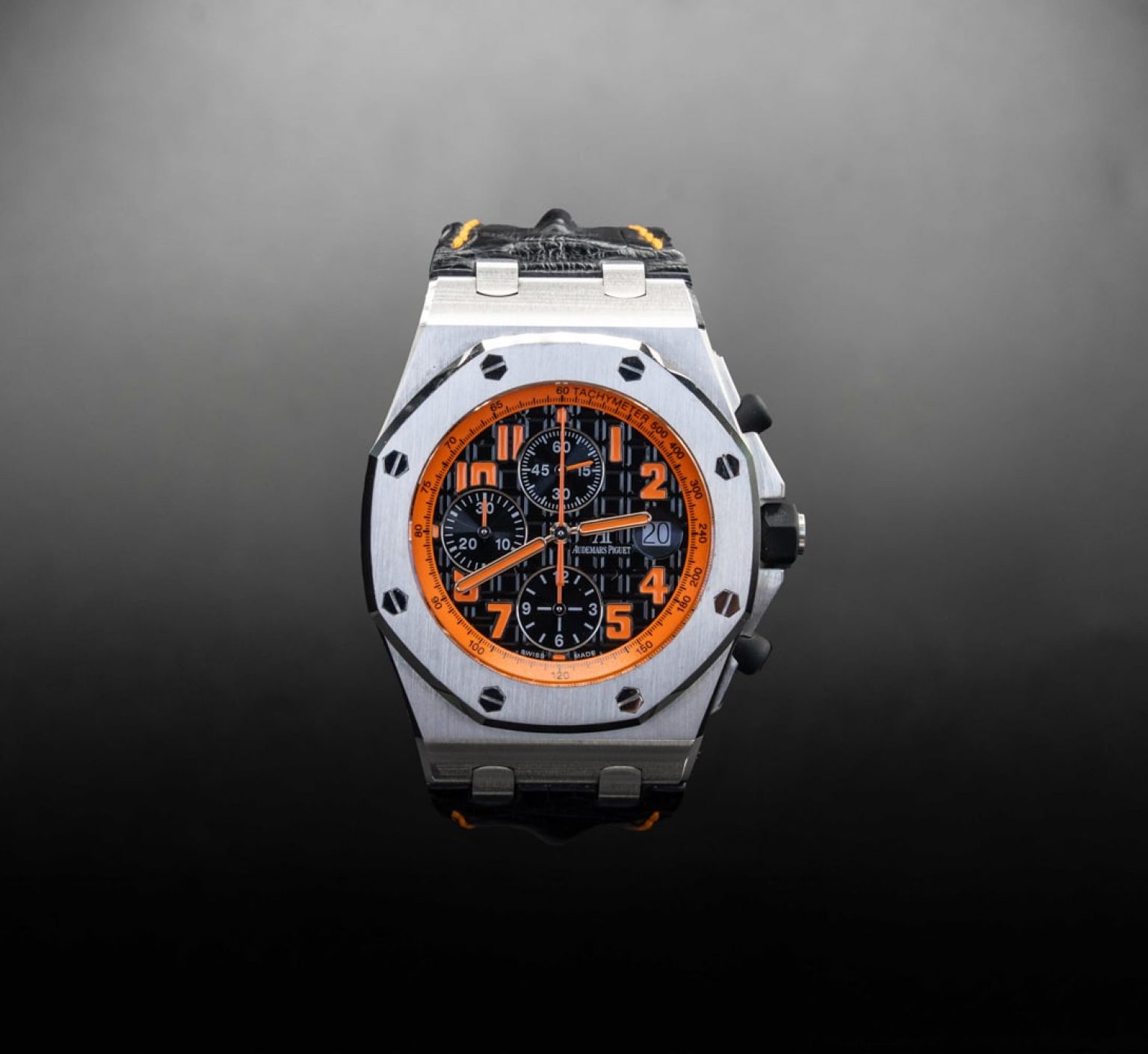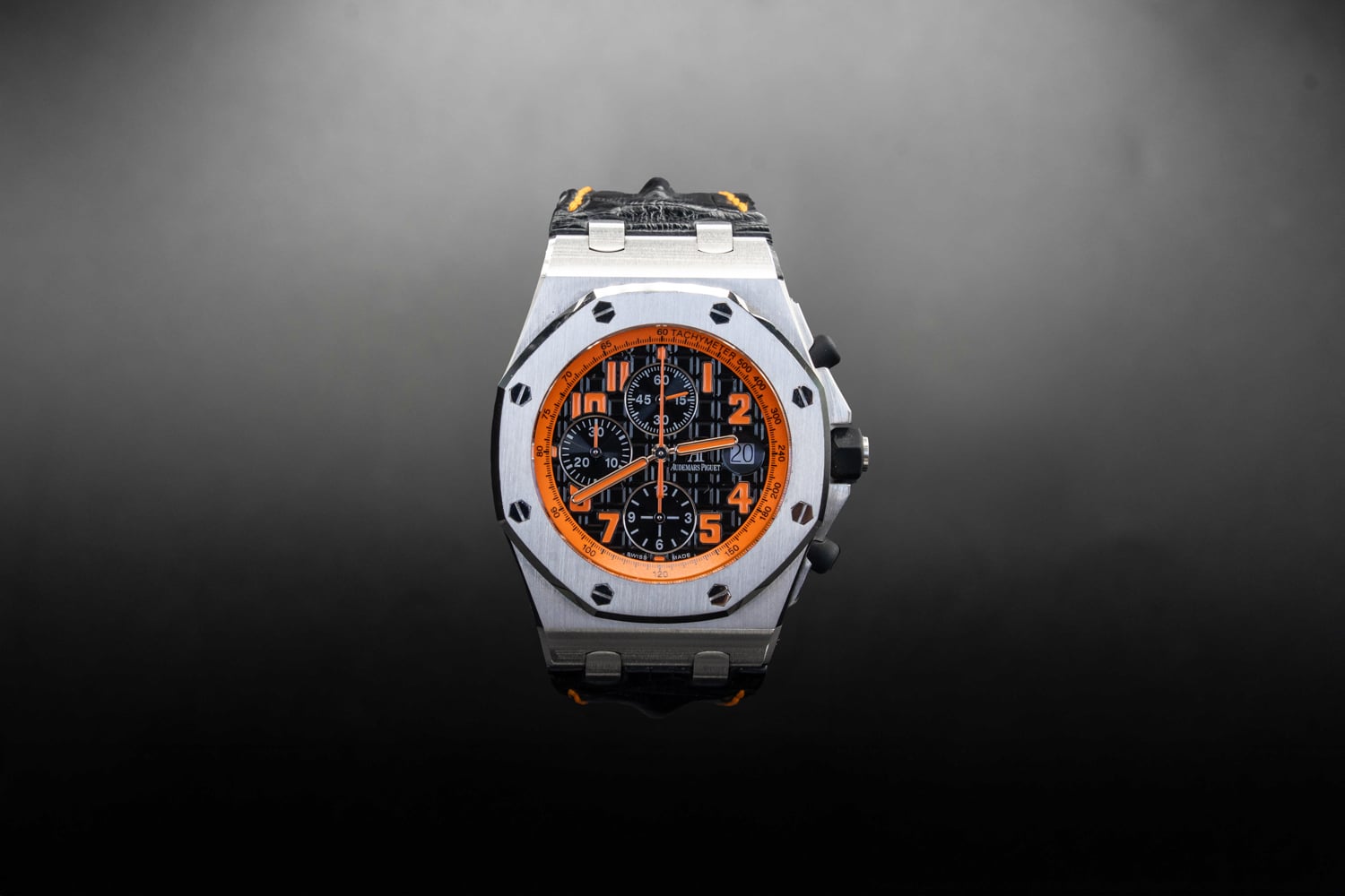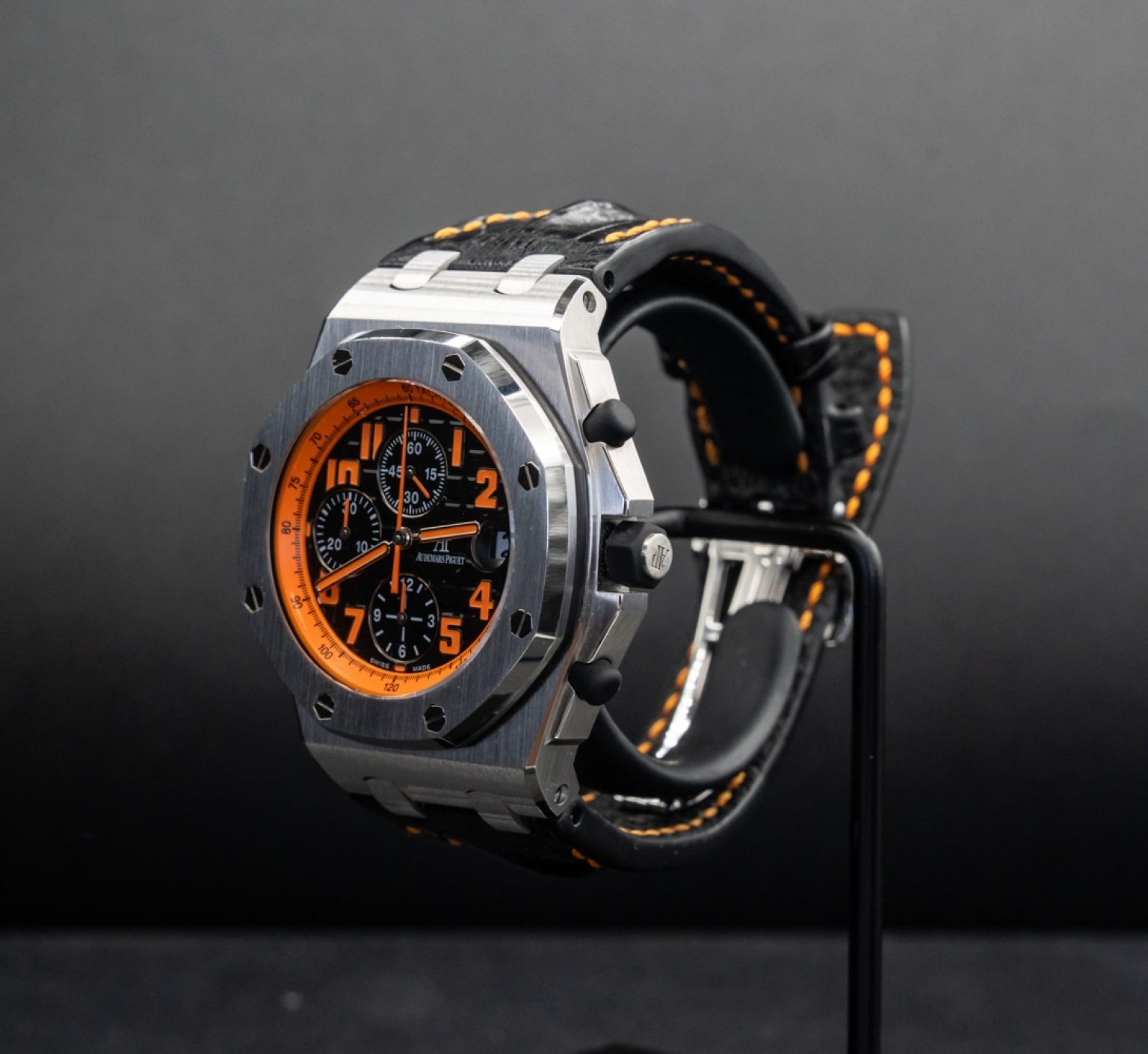 Bold, dynamic, and unmistakably iconic — the Audemars Piguet Royal Oak Offshore “Volcano” is built for those who thrive on intensity. With its striking black and orange color scheme, this chronograph fuses high-performance Swiss engineering with an adrenaline-fueled design. Housed in a 42 mm stainless steel case and powered by AP’s renowned automatic movement, it’s more than a timepiece — it’s a statement. Whether on the wrist of a collector or an enthusiast of speed and style, the Volcano dominates every second it tracks.