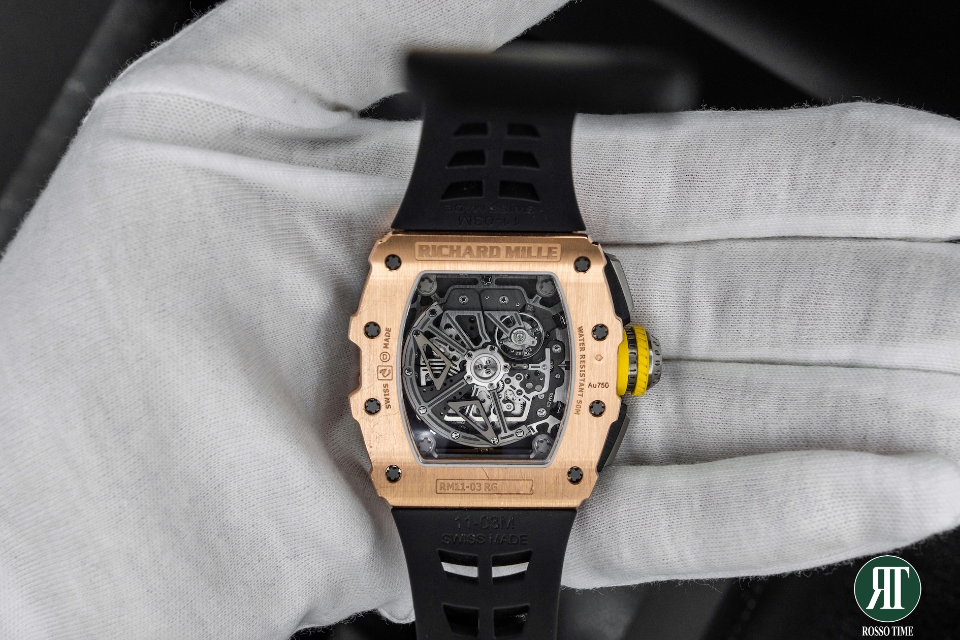 The Richard Mille 11-03 is undoubtedly among the most popular timepieces from Swiss luxury watch manufacturer Richard Mille. This watch, which debuted in 2007, was developed in collaboration with Formula 1 driver Felipe Massa, who wanted a watch that could withstand the enormous forces of an F1 race. The result was a high-tech chronograph that remains one of the most robust watches ever made.