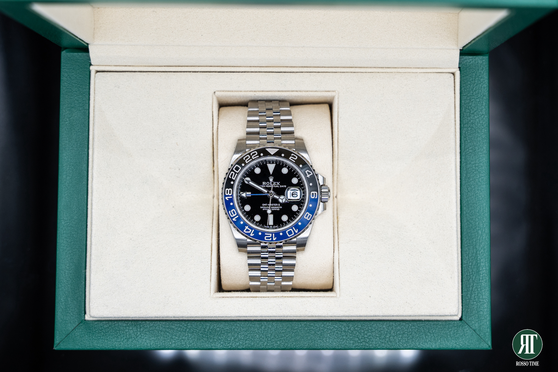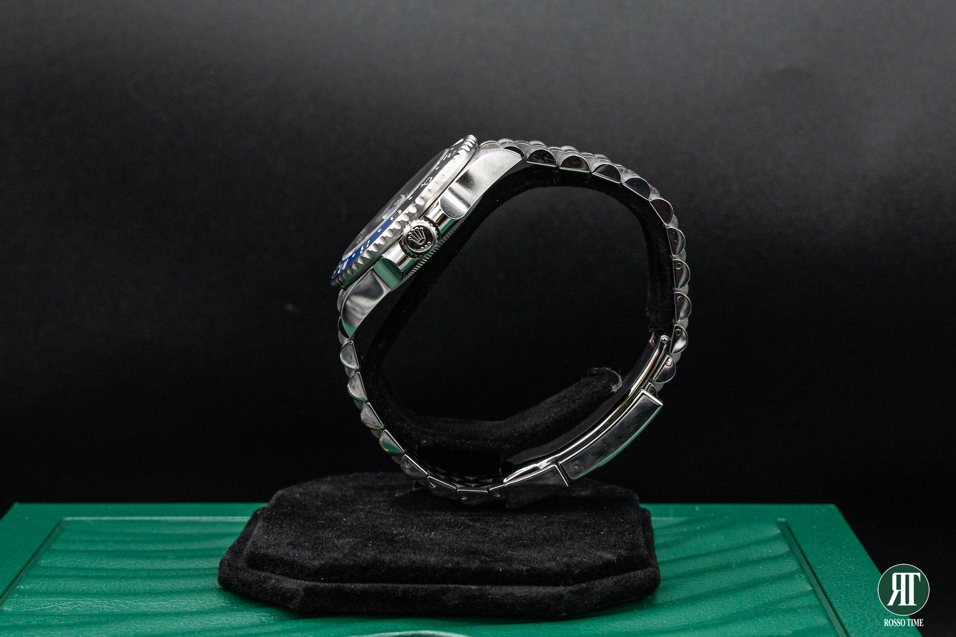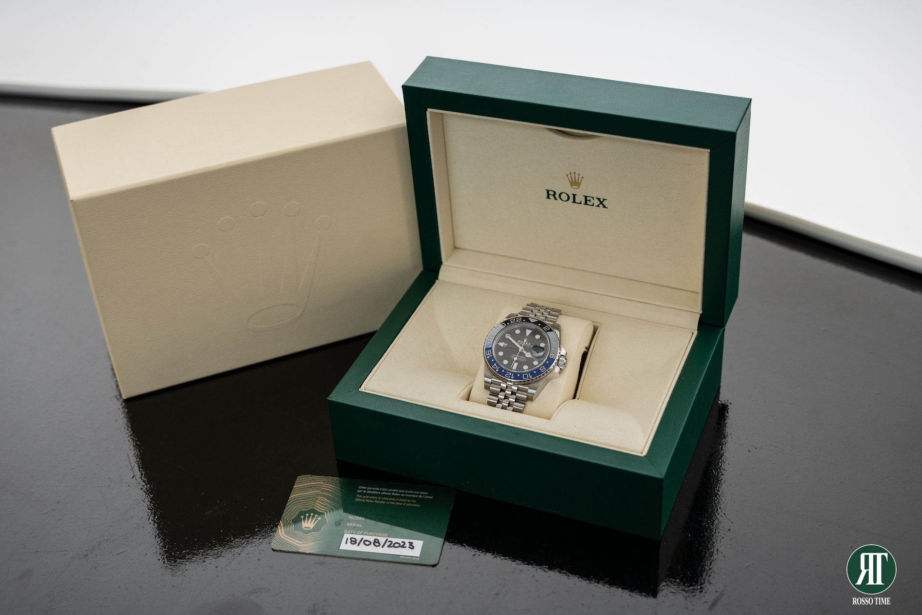 Rolex Gmt Master II. As new. Case and documentation (2023). Stainless steel case, diameter 40mm. Stainless steel oyster bracelet. Automatic movement, calibre 3186. Sapphire crystal, black dial, without numerals. Water-resistant 10ATM. Function: Date and GMT